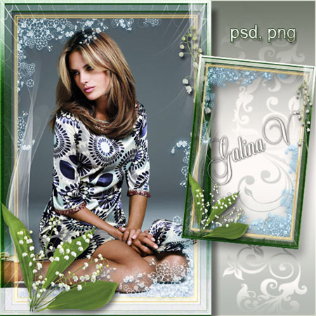Симпатичная рамка в зелёных тонах с душистыми ландышами.