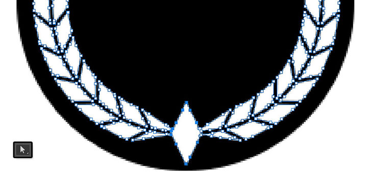 (A) (Прямое выделение) вы можете выбрать и удалить опорную точку любой части лаврового венка, которая вам не нравится или вместо которой вы хотите добавить текст.