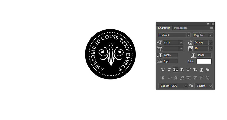 В центре монеты пишем цифру, используя инструмент Text Tool