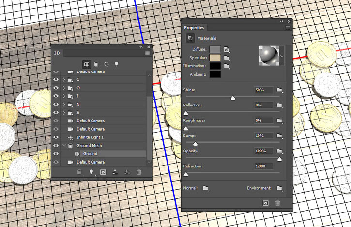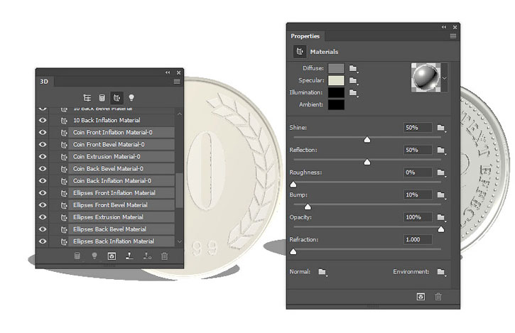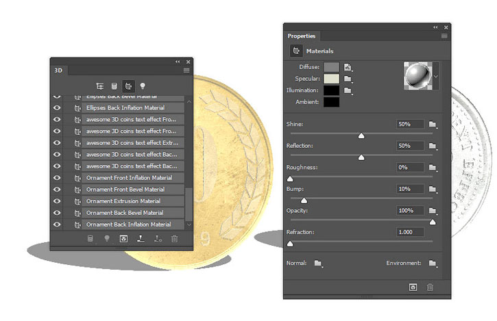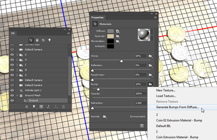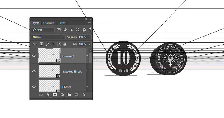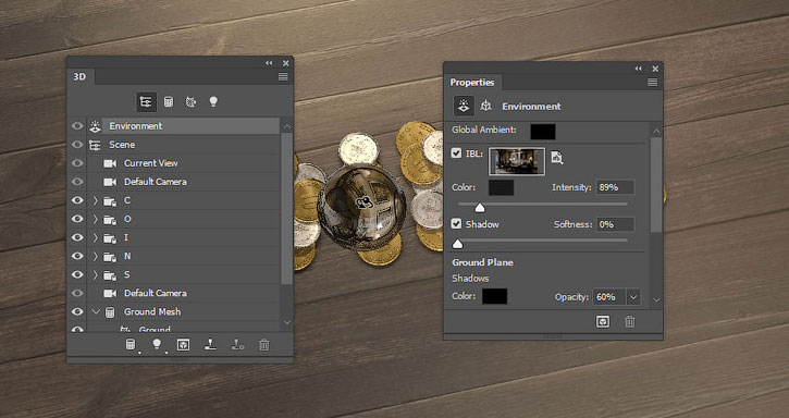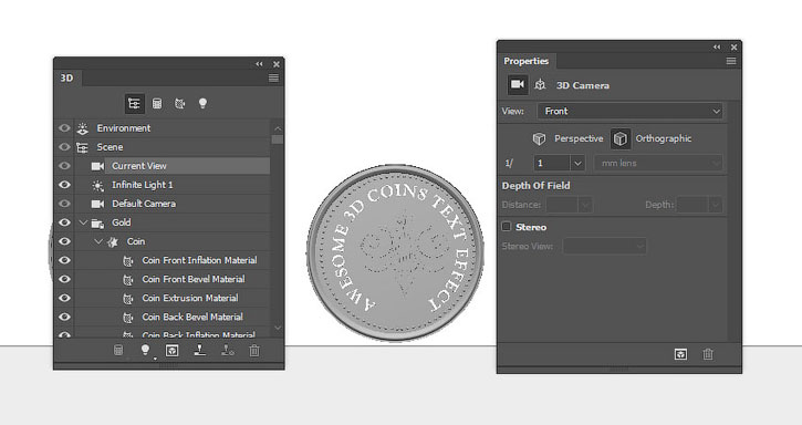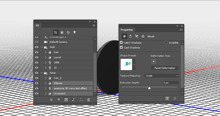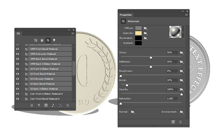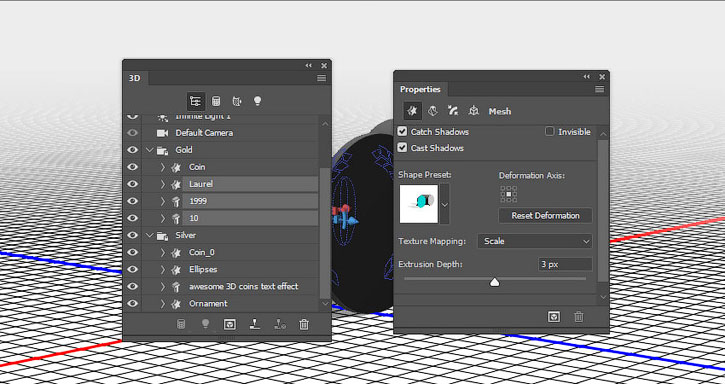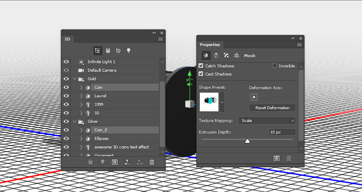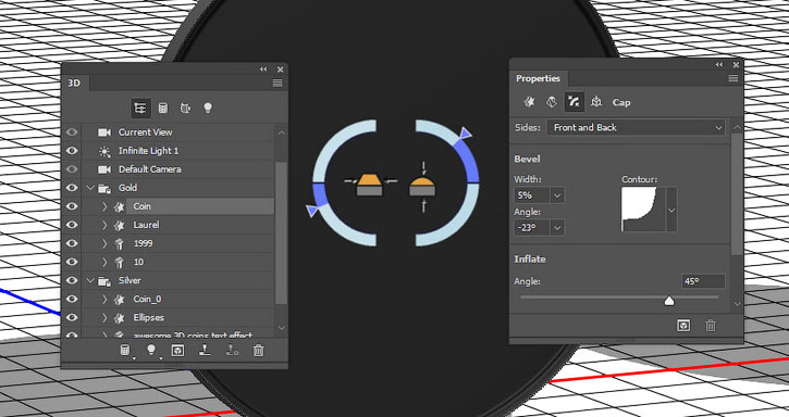 В этом уроке вы узнаете как создать надпись из 3D-монет, используя базовые фигуры Photoshop и 3D-инструменты.