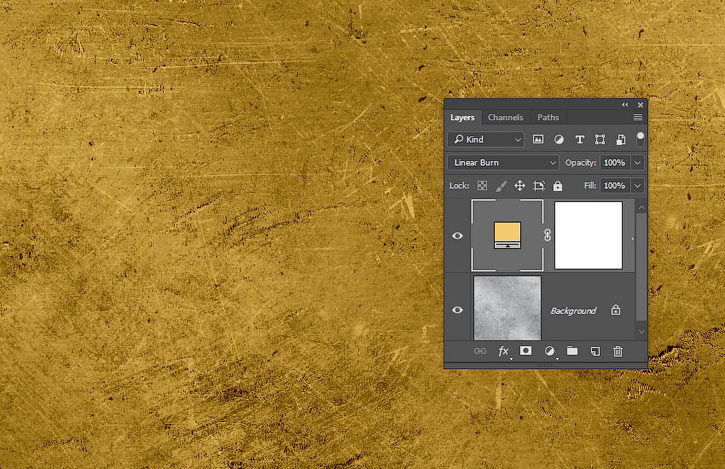 Добавляем заливку Layer – New Fill Layer – Solid Color (Слой – Новый слой-заливка – Цвет) и выбираем цвет #f5cb71. Меняем режим смешивания слоя на Linear Burn (Линейный затемнитель).