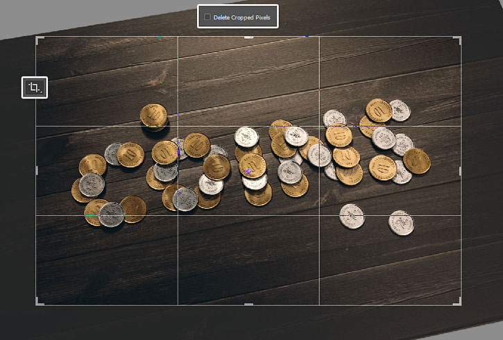 (С) (Кадрирование) обрезаем лишнее. При необходимости можете отключить опцию Delete Cropped Pixels (Удаление пиксельных данных за пределами рамки) на верхней панели параметров.