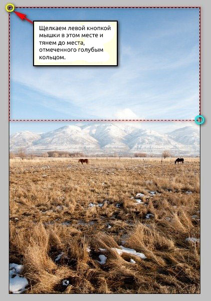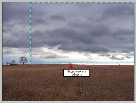Теперь мы будем создавать небо. Открываем изображение Dry winter field. Активируем Rectangular Marquee Tool  (Прямоугольное выделение) (М).
