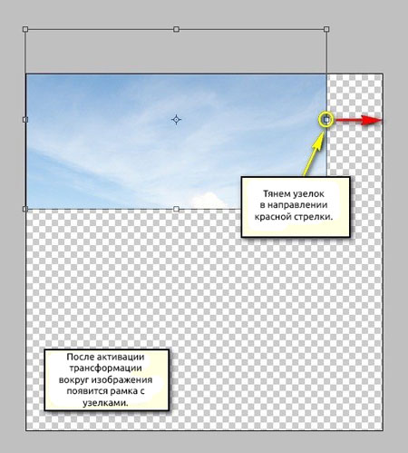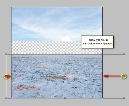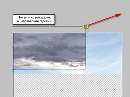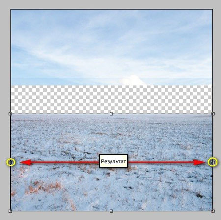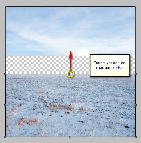 Теперь активируем трансформацию (Cmd/Ctrl+T) и растягиваем небо, как показано ниже: