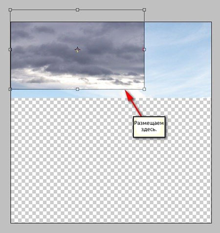 (Перемещение) (V), хватаем небо левой кнопкой мышки и перемещаем на рабочий документ. Размещаем, как показано ниже: