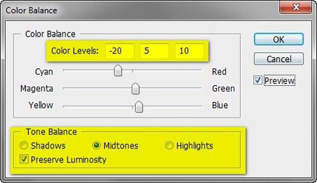 Color Levels (Уровень цвета): -20, +5, 10