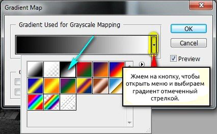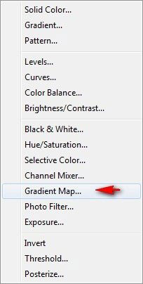 Теперь создаем корректирующий слой Gradient Map (Карта градиента).