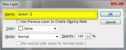 Теперь небо необходимо слегка затемнить. Кликаем левой кнопкой мышки по слою "sky 2", затем жмем Ctrl/Cmd+Shift+N, чтобы создать новый слой сразу над активным; в появившемся диалоговом окне вводим название "darken 1".