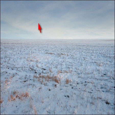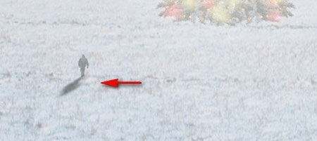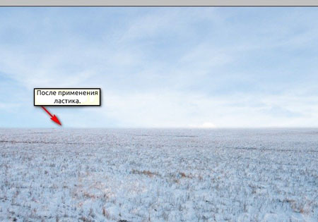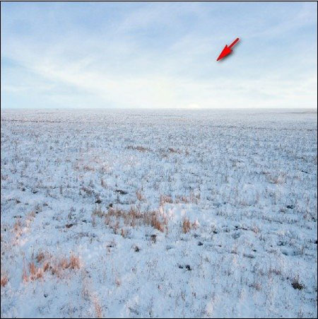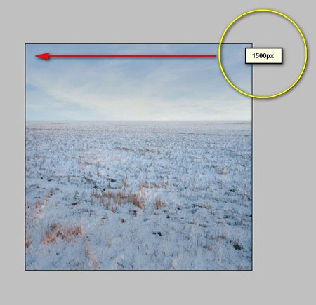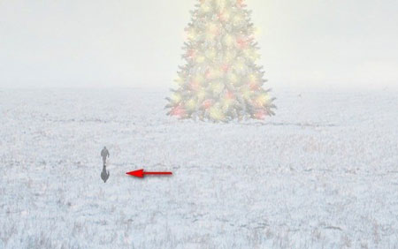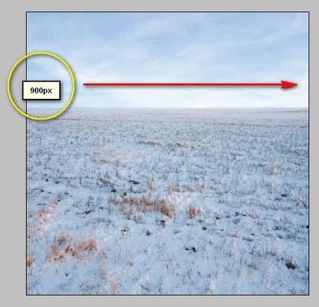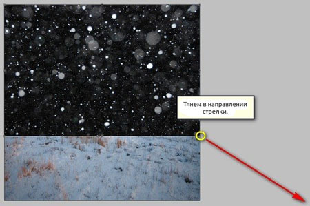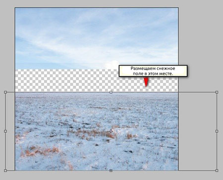 Теперь мы добавим землю покрытую снегом. Открываем изображение Winter Field. Активируем Move Tool  (Перемещение) (V) и перетаскиваем его на рабочий документ. Убедитесь, что он размещен сразу над слоем "darken 1". Размещаем на полотне, как показано ниже:
