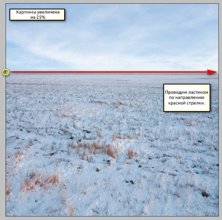 Начинаем работать ластиком по направлению красной стрелки на скриншоте: