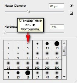 (Кисть) (В) и настраиваем ее параметры: