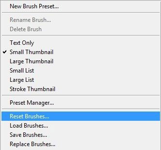 Затем в контекстном меню выбираем Reset Brushes (Восстановить кисти).