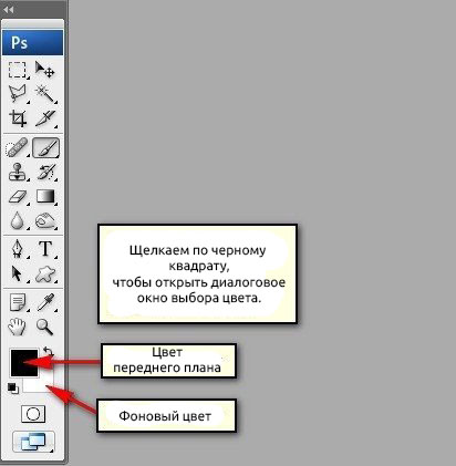 Для изменения цвета кисти кликаем по черному квадрату, как на скриншоте ниже, чтобы открыть окно выбора цвета.