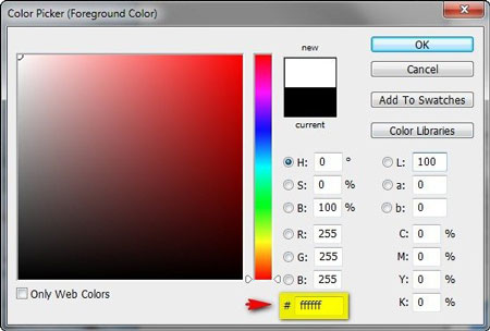 В появившемся окне вводим номер цвета: ffffff: