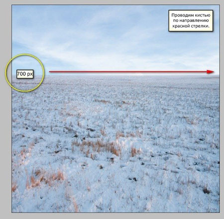 Теперь, когда мы все настроили, проводим кистью по направлению красной стрелки: