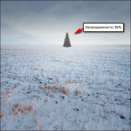Далее уменьшаем непрозрачность слоя "Xmas tree" до 90%.