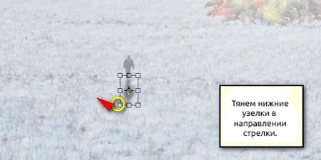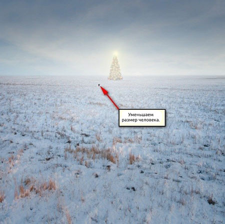 Активируем трансформацию (Ctrl/Cmd+T) и уменьшаем человека, как показано ниже: