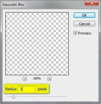 Теперь размоем тень. Для этого к слою с тенью применяем фильтр Filter - Blur - Gaussian Blur (Фильтр - Размытие - Размытие по Гауссу). Устанавливаем Radius (Радиус) на 2 пикселя и жмем OK.