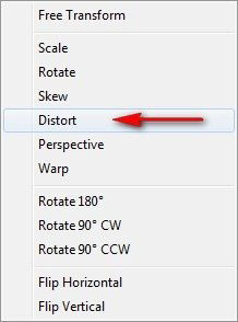 Откорректируем форму тени в соответствии с источником света. Активируем трансформацию (Ctrl/Cmd+T) и щелкаем правой кнопкой мышки по рабочей области. В контекстном меню выбираем Distort (Искажение).