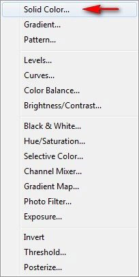 В контекстном меню выбираем Solid Color (Цвет):