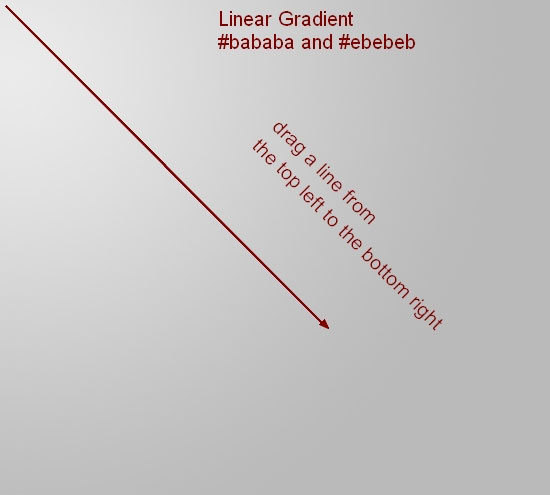 (Gradient Tool) (G). На панели свойств в верхней части экрана выберите линейный градиент (Linear Gradient) и в цветовой палитре установите цвета #bababa и #ebebeb. Теперь нарисуйте линию из левого верхнего угла в правый нижний угол.