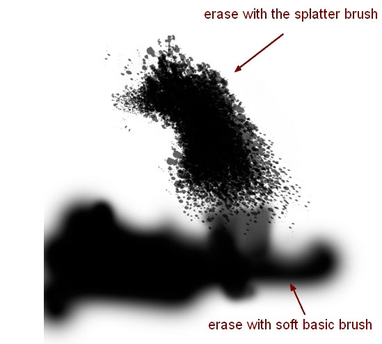 к слою с нарисованными брызгами и пройдитесь по ней кистью черного цвета, чтобы уменьшить непрозрачность брызг.
