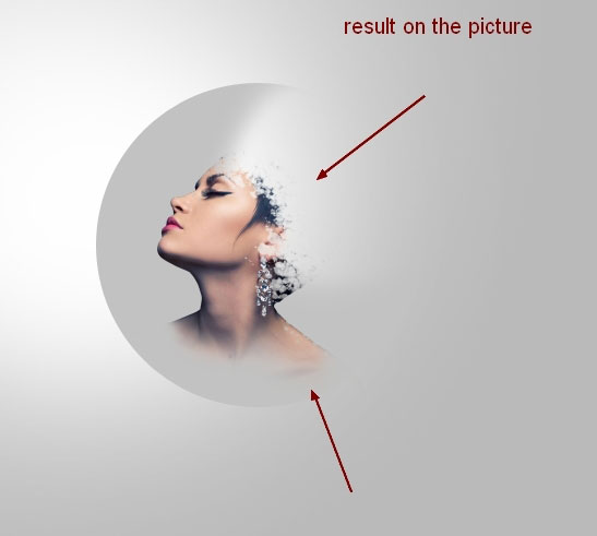 К слою с кругом добавьте маску и мягкой кистью черного цвета сотрите его правую часть: