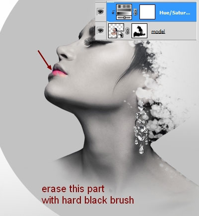 Используйте эту кисть, чтобы на маске стереть ею голову модели, затем мягкой кистью сотрите края тела модели (ориентируйтесь на скриншот):