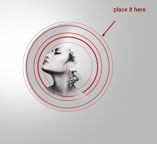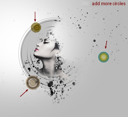 Растрируйте все наборы с кругами и поместите вокруг еще три изображения кругов. Все эти слои поместите над слоем с моделью.