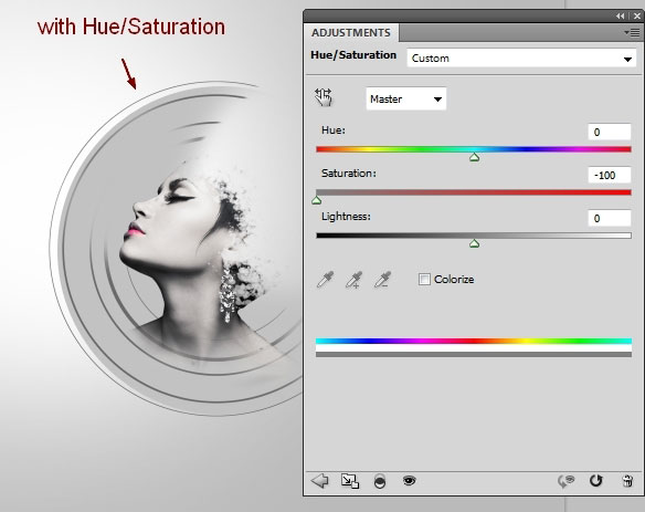 К слою с кругами добавьте корректирующий слой Цветовой тон/Насыщенность (Слой – Новый корректирующий слой – Цветовой тон/Насыщенность) (Layer > New Adjustment Layer > Hue/Saturation).