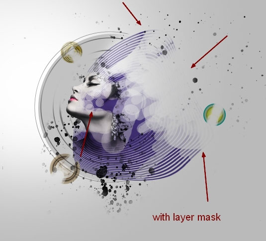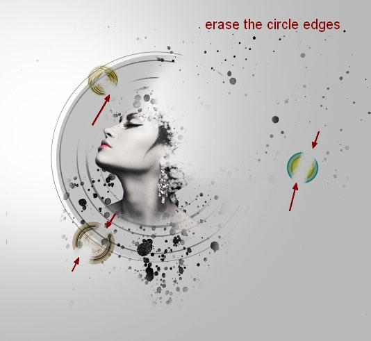 Добавьте маску ко всем слоям с кругами и кистью черного цвета сотрите их края:
