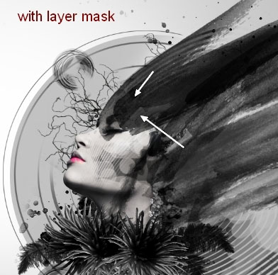 К этому слою добавьте маску и мягкой кистью черного цвета сотрите часть, как показано на скриншоте: