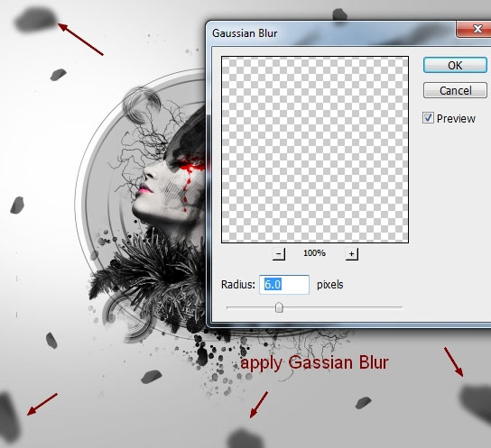 К слою с крупными лепестками примените фильтр Размытие по Гауссу (Фильтр – Размытие – Размытие по Гауссу) (Filter > Blur > Gassian Blur) с радиусом размытия 6px. Это добавит глубины изображению.
