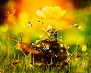 В этом уроке мы создадим волшебную сцену с маленькой девочкой, которая едет верхом на улитке. Вы узнаете, какими методами можно соединять объекты с разных фотографий. Помимо склейки мы будем работать над освещением, глубиной сцены и многим другим.