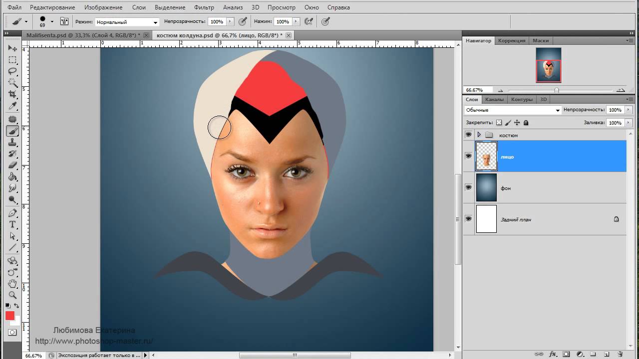 Екатерина покажет, как можно в фотошопе сшить костюм колдуньи Малефисенты.