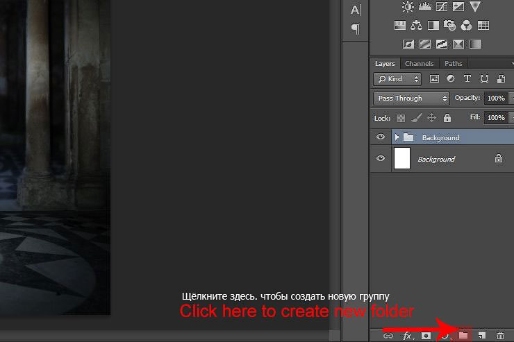 Мы завершили работу над задним фоном. Далее, объедините все слои, относящиеся к заднему фону, в одну группу, чтобы привести в порядок палитру слоёв. Назовите новую группу Задний фон (Background).