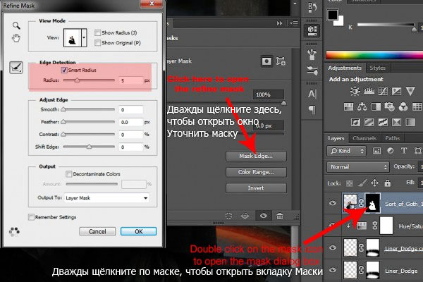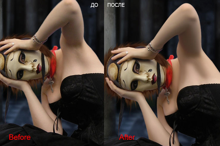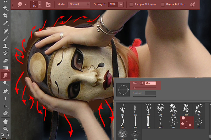 Примечание переводчика: если вы работаете в ранних версиях программы Photoshop, то используйте инструмент Палец для ретуши кожи и маски.