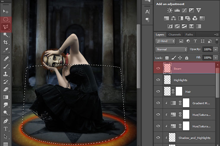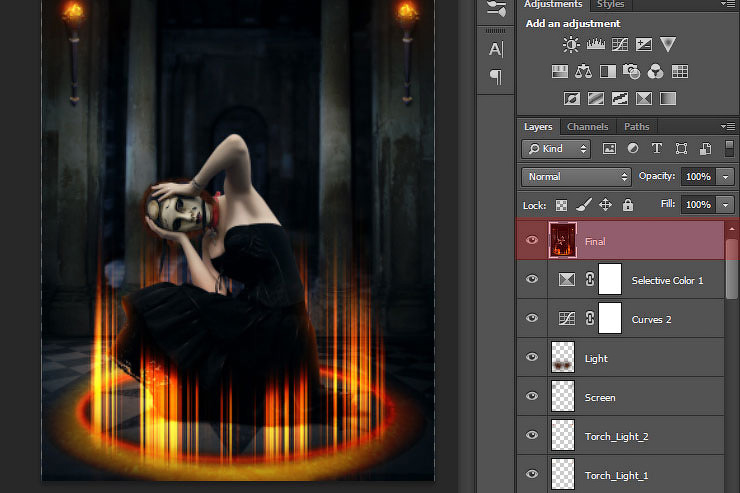 Данный урок состоит из 42 шагов, включающих три основных раздела. В основе идеи урока лежит магический ритуал, поэтому я назвал этот урок ‘Художественный Спиритический Ритуал’. Для создания данной спиритической сцены, вначале мы создадим задний фон, используя изображение храма. Далее, мы добавим световые эффекты на землю, включая модель. В заключение, мы добавим световые эффекты, чтобы создать единую атмосферу. Данный урок был создан с помощью программы Photoshop CC, но вы можете выполнить урок с помощью Photoshop CS6.
