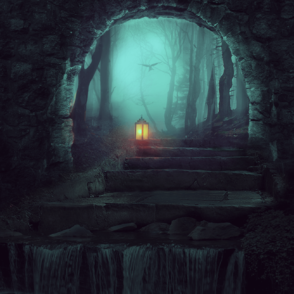 Сначала мы создадим основу, используя фото леса и ступеней. Затем добавим водопад, птицу, арку и фонарь и объединим все это с помощью корректирующих слоев, масок и кистей. В конце мы добавим еще несколько корректирующих слоев и нарисуем свет от фонаря.