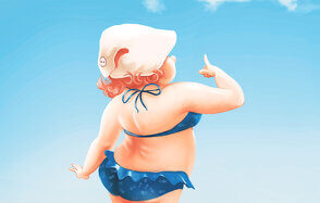 Доработал волосы, изменил форму купальника и почти полностью стер лайн.