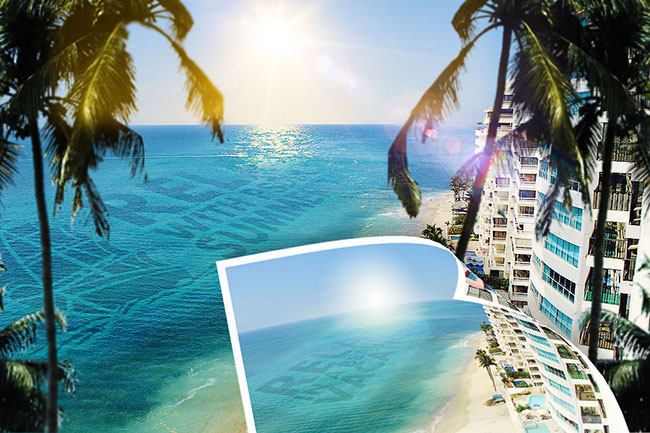 (Brush Tool), установите мягкую белую кисть, а затем просто прокрасьте линию горизонта на участках пересечения с пальмами. А также прокрасьте вдоль краёв изображения, чтобы создать плавный переход.