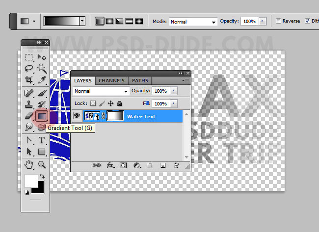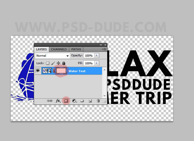 К слою Текст на воде (Water Text), добавьте слой-маску, как показано на скриншоте ниже.