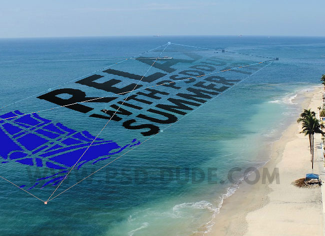 Далее, идём Редактирование – Трансформация – Искажение (Edit > Transform > Distort). Измените перспективу текста в соответствии с перспективой морской поверхности, как показано на скриншоте ниже.