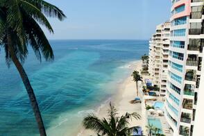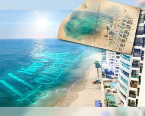 Чтобы создать текст на воде, нам необходима фотография с изображением моря, озера или любое изображение с водной поверхностью. Я использую исходное изображение с морским пляжем, которое вы можете скачать по ссылке в начале этого урока, но вы можете использовать любое другое исходное изображение, которое вам нравится, это может быть фотография с летнего отпуска. Откройте исходное изображение с морским пляжем в программе Photoshop. Назовите слой с пляжем Морской пляж (Sea Beach).