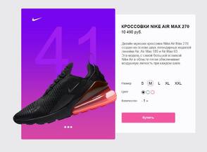 Форма визуально будет делиться на две части: в левой будет слайдер с фотографиями для отображения разных ракурсов товара, а с правой стороны расположиться вся нужная техническая информация о товаре и кнопка заказа.